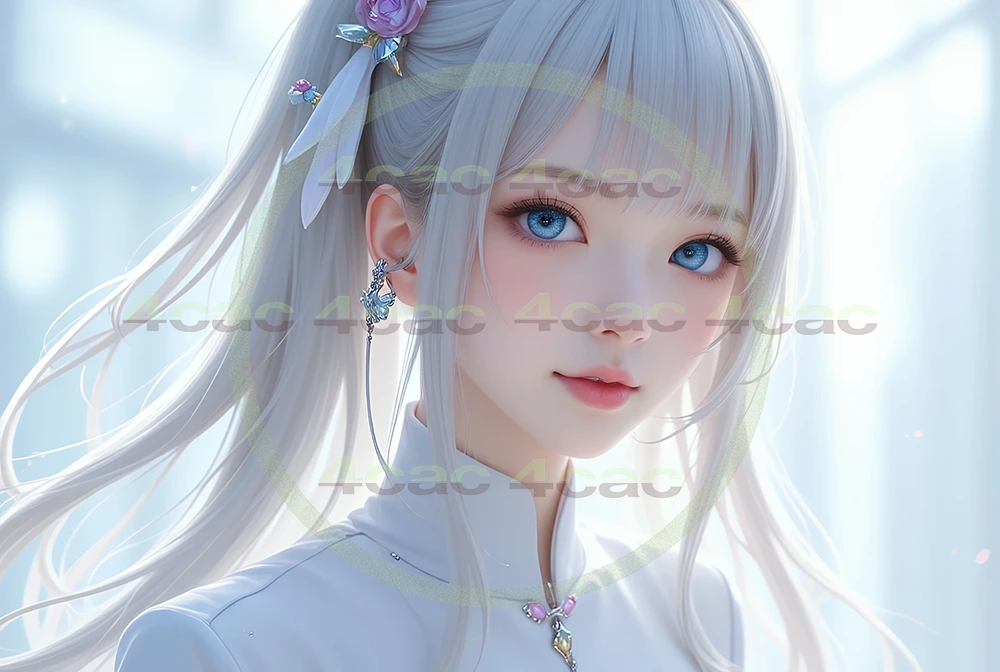 商品コード: 4cP005044 カテゴリー: AI生成画像, 横型 3:2 [Horizontal] タグ: Angelic, Anime style, Beautiful eyes, Beautiful girl, Blue eyes, clear skin, close-up, Delicate beauty, Ephemeral, Fantasy, idol-like, Light, portrait, pure, Realistic portrait, Silver hair, Sky background, Translucent, White clothing, アイドル風, アニメ風, クローズアップ, ポートレート, リアル, 儚い, 儚げな美, 光, 天使のよう, 幻想的, 清楚, 白い服, 空背景, 美しい瞳, 美少女, 透明感, 透明肌, 銀髪, 青い瞳 ブランド: 4cac